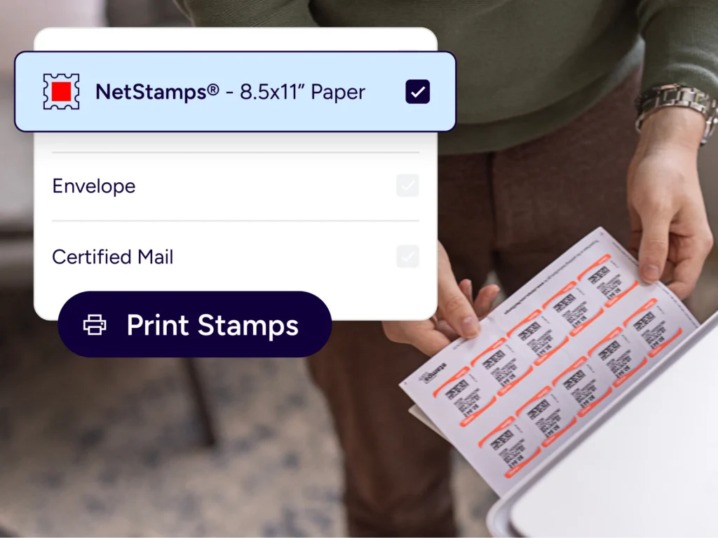 Easily print First Class Mail® postage on an envelope or attach a NetStamp.