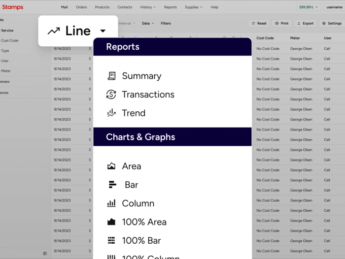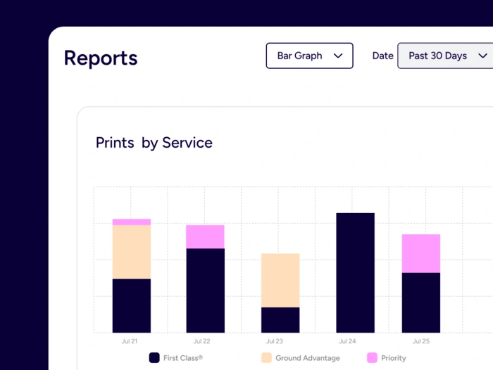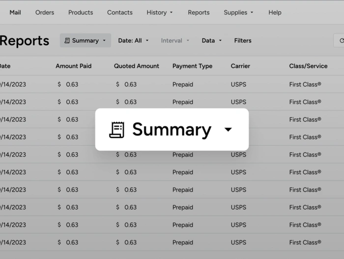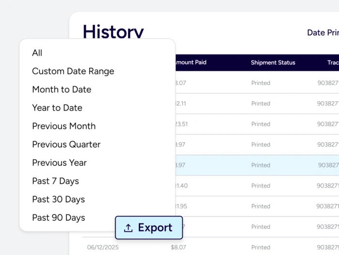 View and export your mailing history, expenses, and balances with built-in reports, which support everything from operations to finances. Move from a quick pulse check to deeper analysis in just a few clicks. Share printable summaries to highlight trends in volume, spend, and on-time delivery, or export a CSV to explore the raw data. With consistent definitions across every report, everyone stays aligned—and decisions happen faster.
