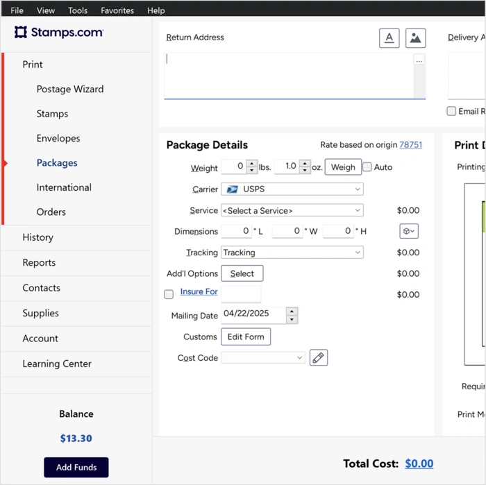 Ship smarter across borders with international shipping from USPS®, UPS®, DHL Express®, and GlobalPost®—all in one place. Compare real-time shipping rates, print labels, and generate customs forms without switching tools. Save time, reduce costs, and keep every international package moving from a single dashboard.