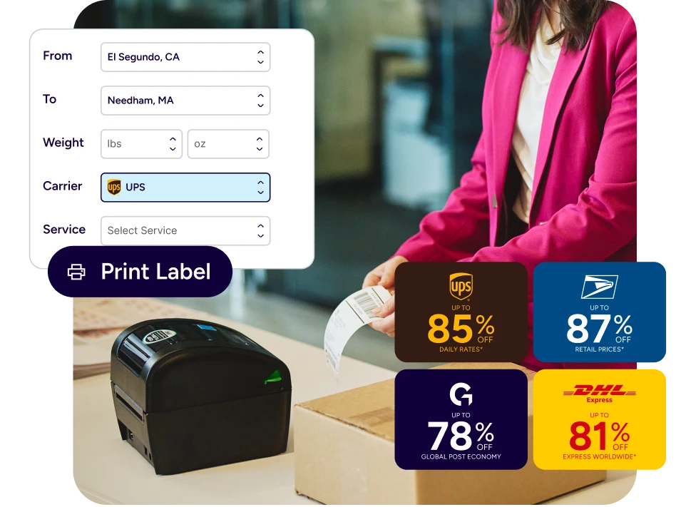 With savings of up to 90 % on USPS®, UPS®, DHL®, and GlobalPost® rates, your agency can spend less time managing postage and more time serving clients. From policy packets to cancellation notices, every delivery becomes easier, accurate, and cost-efficient—no post-office lines required.